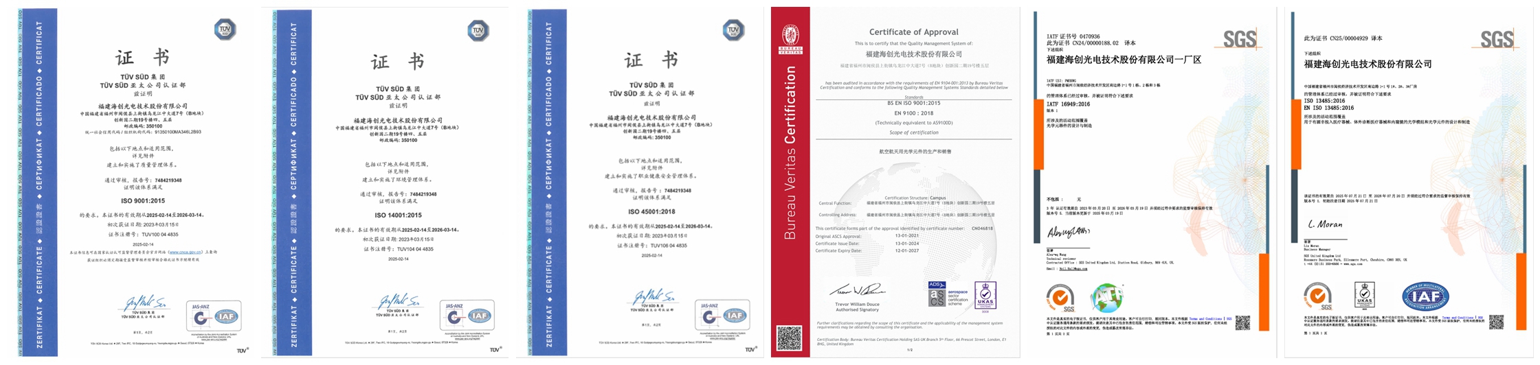 公海赌船光电致力于保持最高的质量标准,并不断投入并优化我们的质量体系。已获得如下证书: